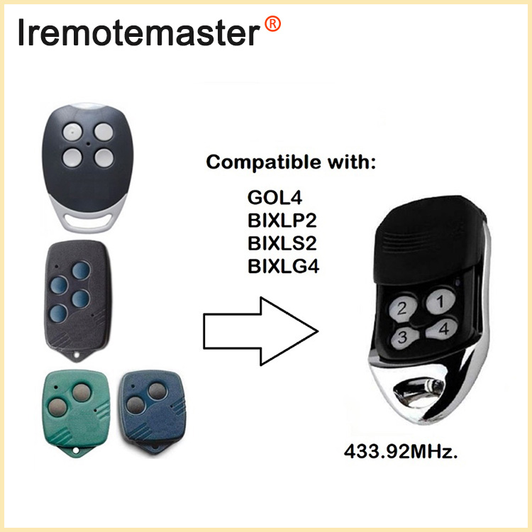 GOL4 കമാൻഡ് ഗാരേജ് ഡോർ ഓപ്പണറിന് BIXLP2 BIXLS2 BIXLG4, GOL4 കമാൻഡ് BIXLP2 BIXLS2 BIXLG4 റോളിംഗ് കോഡ് 433MHz-ന് അനുയോജ്യമാണ്.